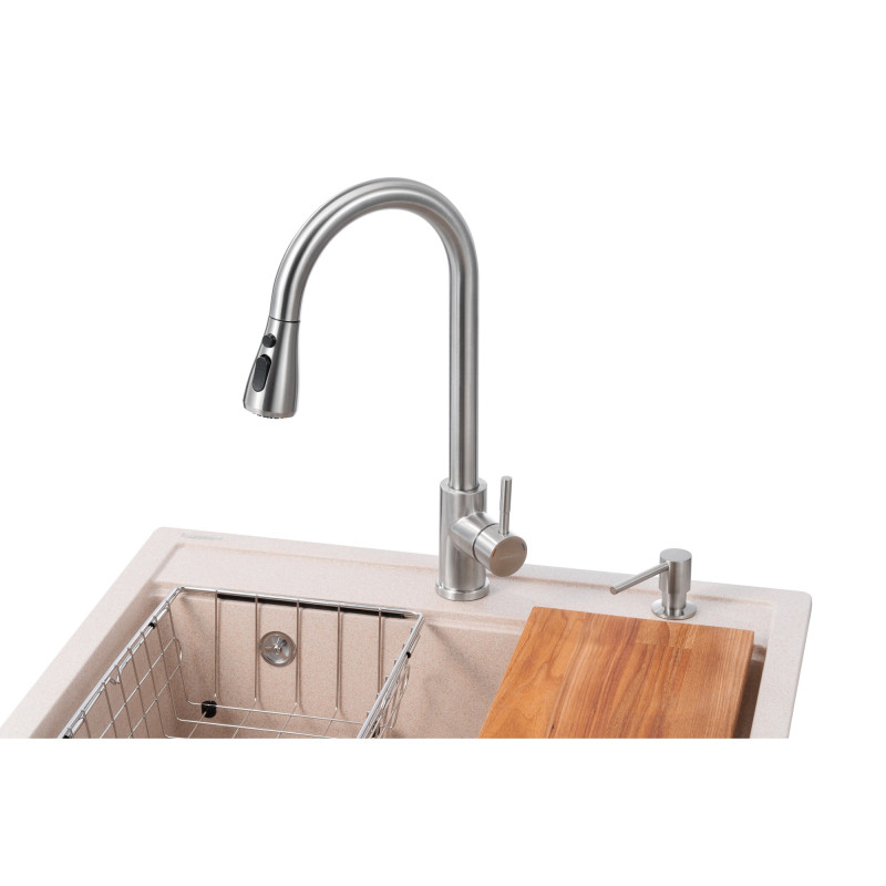 | Оснащення | дозатор, змішувач з підключенням до фільтру води, кошик, обробна дошка, перелив |