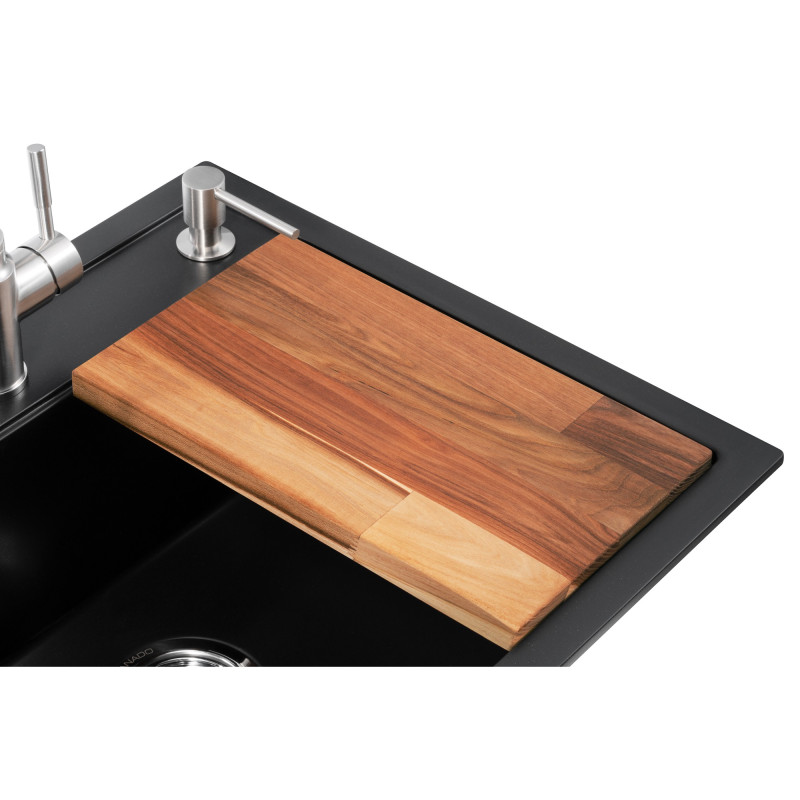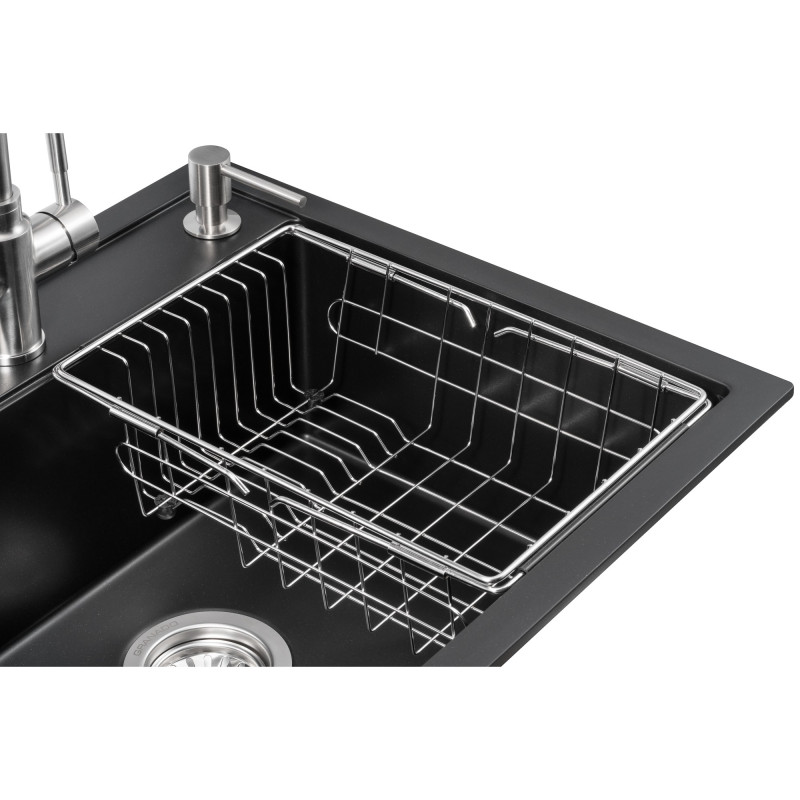 Кухонна станція GRANADO Basic Lerida Black shine - це програма-мінімум, з якої розпочнеться ваша кухня мрії, куди ми додали: мийку Lerida, змішувачем Campo LUX, дозатор Redondo, металевий кошик, обробна дошка.