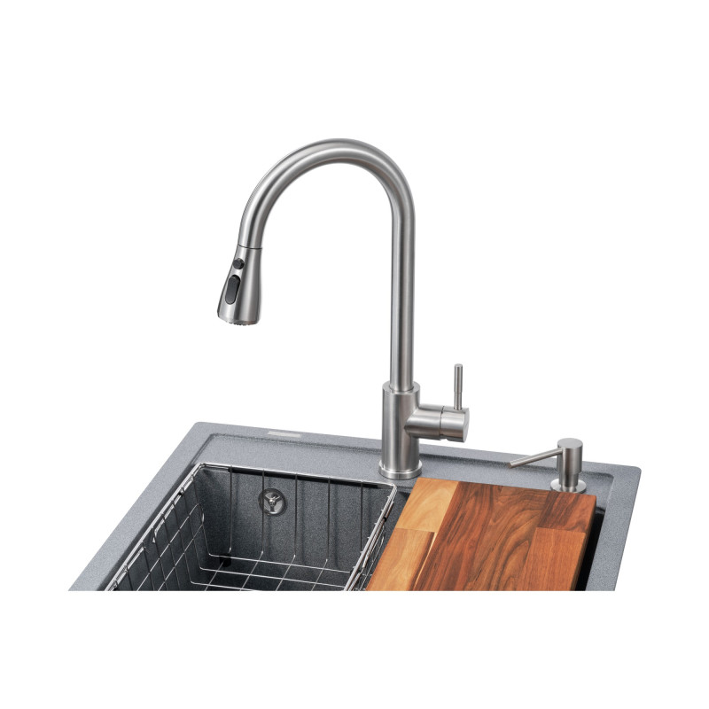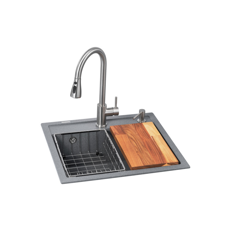Кухонна станція GRANADO Basic Lerida grafito - це програма-мінімум, з якої розпочнеться ваша кухня мрії, куди ми додали: мийку Lerida, змішувачем Campo LUX, дозатор Redondo, металевий кошик, обробна дошка.