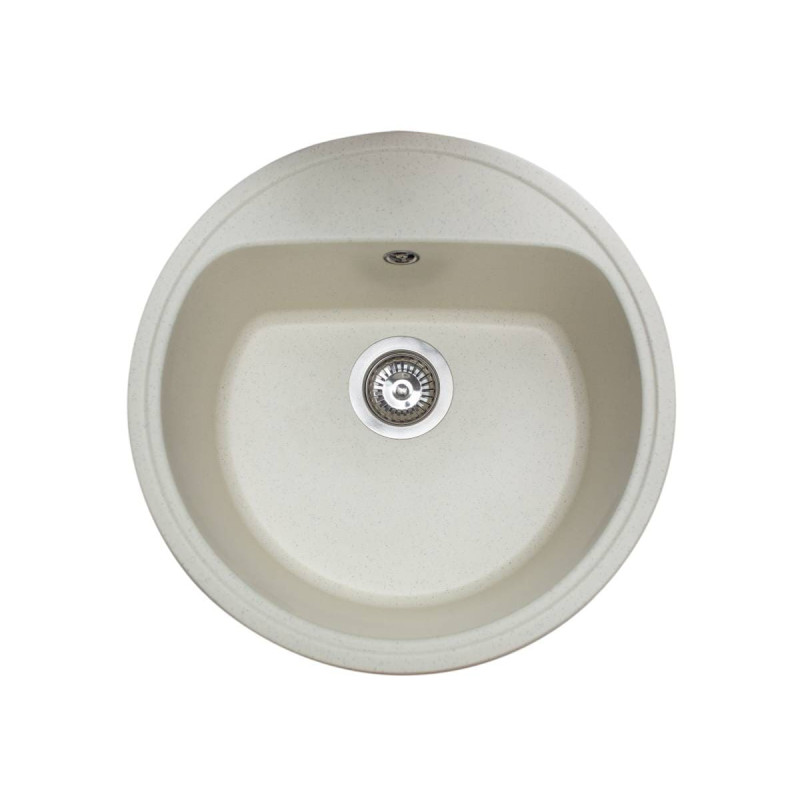 Кругла кухонна мийка MALIBU має однорідну текстуру та колір - жасмин. Кількість чаш - 1. Тип установки - врізний. Матеріал мийки - Mirastone - не всочує запахи, відштовхує жир та забруднення, а також не змінює кольору в процесі експлуатації.