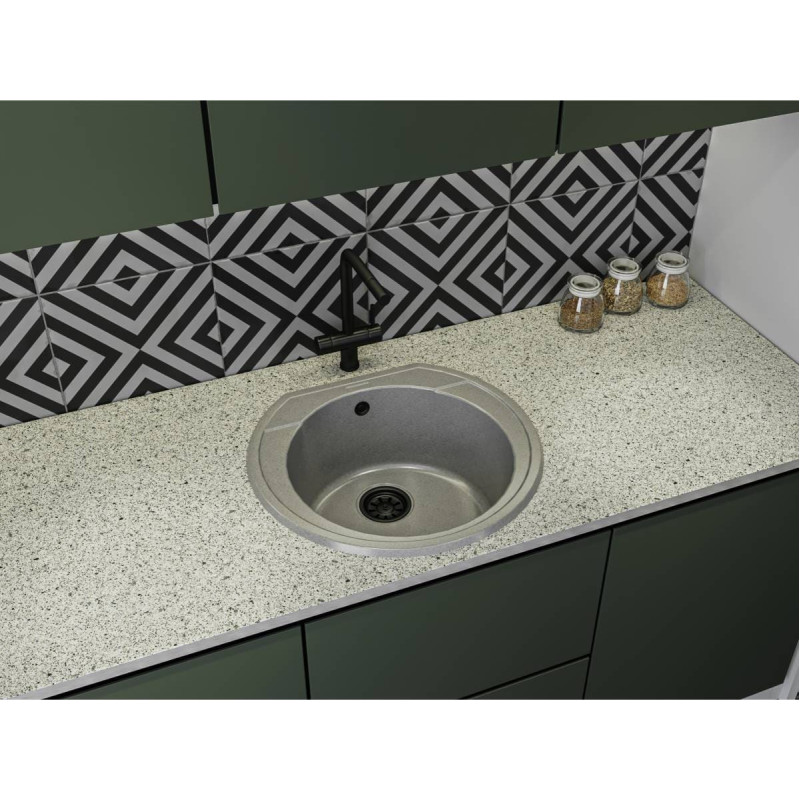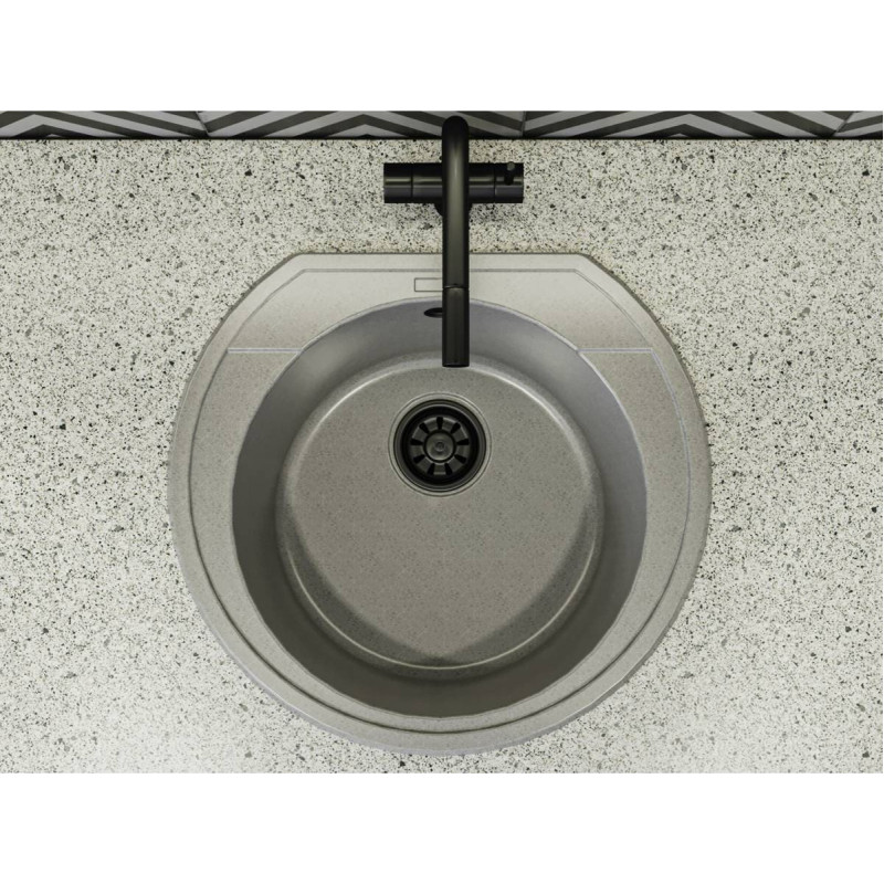Кругла кухонна мийка TULUZA має однорідну текстуру та колір - сірий. Кількість чаш - 1. Тип установки - врізний. Матеріал мийки - Mirastone - не всочує запахи, відштовхує жир та забруднення, а також не змінює кольору в процесі експлуатації.