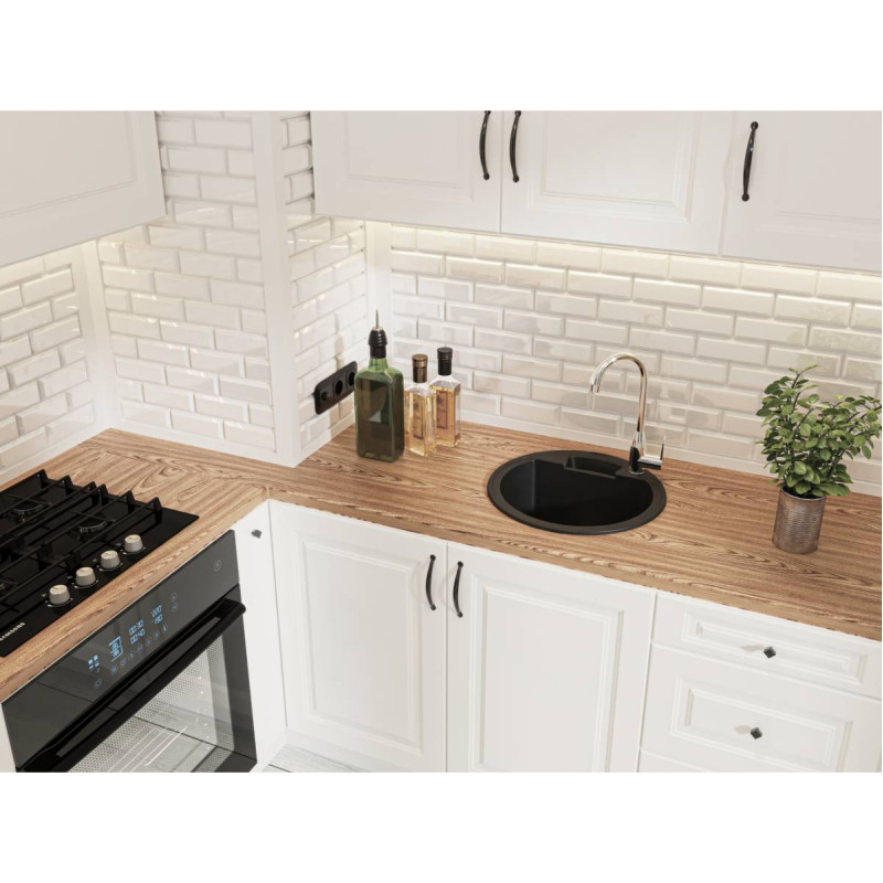 Кругла кухонна мийка VALENCIA має однорідну текстуру та колір - чорний. Кількість чаш - 1. Тип установки - врізний. Матеріал мийки - Mirastone - не всочує запахи, відштовхує жир та забруднення, а також не змінює кольору в процесі експлуатації.