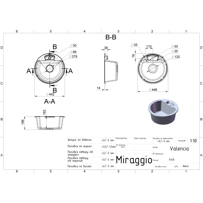 Кухонна мийка VALENCIA зі штучного каменю від MIRAGGIO - практичне та функціональне рішення для обладнання сучасної кухні.