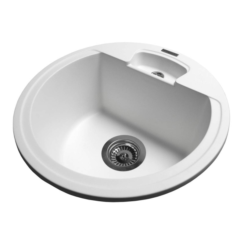 Кругла кухонна мийка VALENCIA має однорідну текстуру та колір - білий. Кількість чаш - 1. Тип установки - врізний. Матеріал мийки - Mirastone - не всочує запахи, відштовхує жир та забруднення, а також не змінює кольору в процесі експлуатації.