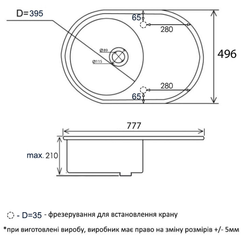 | Особливості | фрезерування з двох сторін для встановлення крану, дизайн з вкрапленням |
