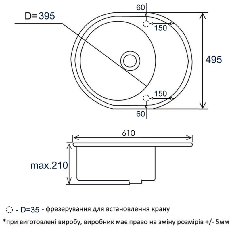 | Особливості | фрезерування з двох сторін для встановлення крану, дизайн з вкрапленням |