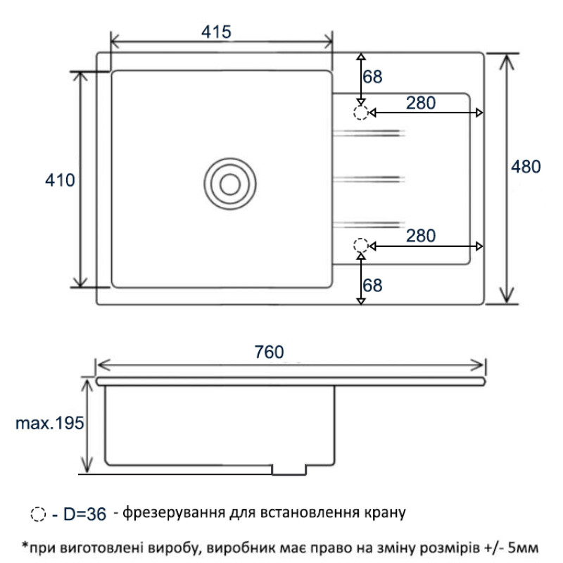 | Розмір мийки, мм | 765*485 |