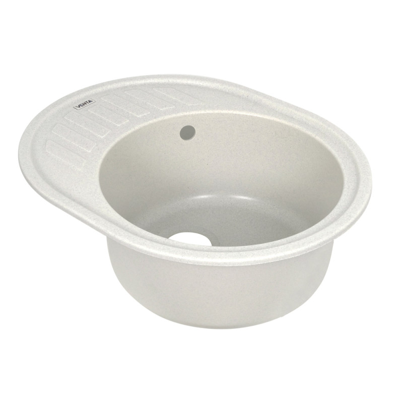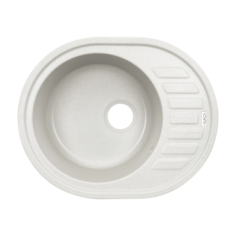 Кухонна мийка VENTA Stone VS505004 615х495х200 з якісного штучного каменю має світло-сіру поверхню і відмінний дизайн. Вона оснащена прямокутною чашею з отвором для зливу та переливу, а також ребристим крилом для сушіння посуду. Мийка монтується врізним способом у стільницю.