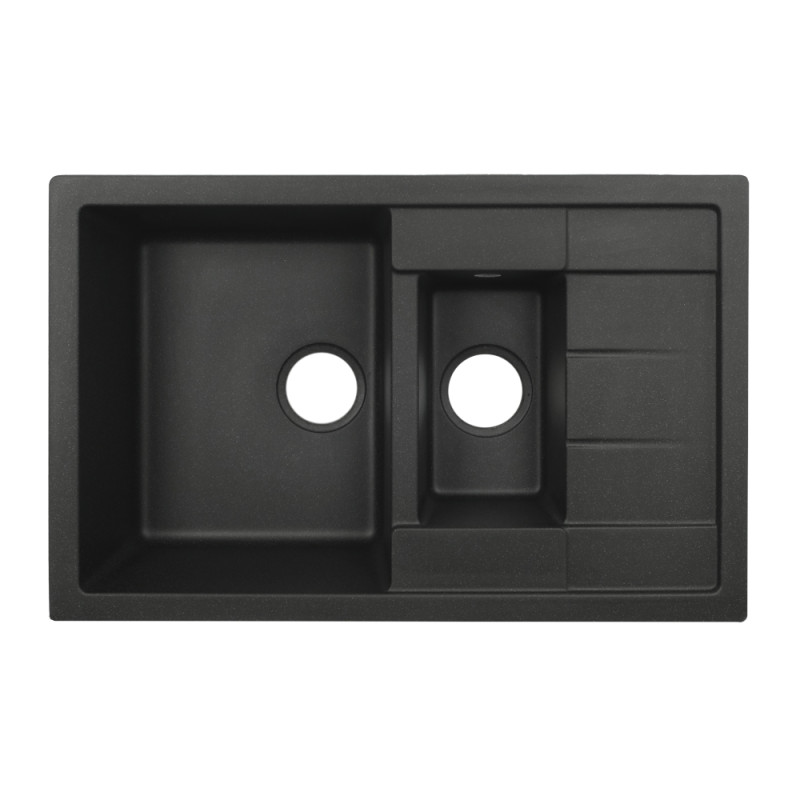 Кухонна мийка VENTA Stone 775х495х200 виготовлена з якісного штучного каменю, має чорну поверхню і стильний дизайн. Вона оснащена робочою чашею, додатковою зоною для розморожування продуктів, отвором для зливу та переливу, а також ребристим крилом для сушіння посуду. Мийка монтується врізним способом у стільницю.