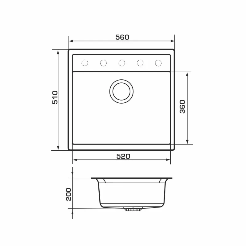 Мийка GRANADO Lerida має дуже широку чашу - 520 мм., а також велике поле для установки не тільки змішувача, а й дозатора миючого засобу або фільтра для води.