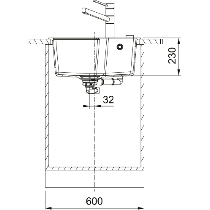 Мінімальна ширина шафи (бази) 600 мм