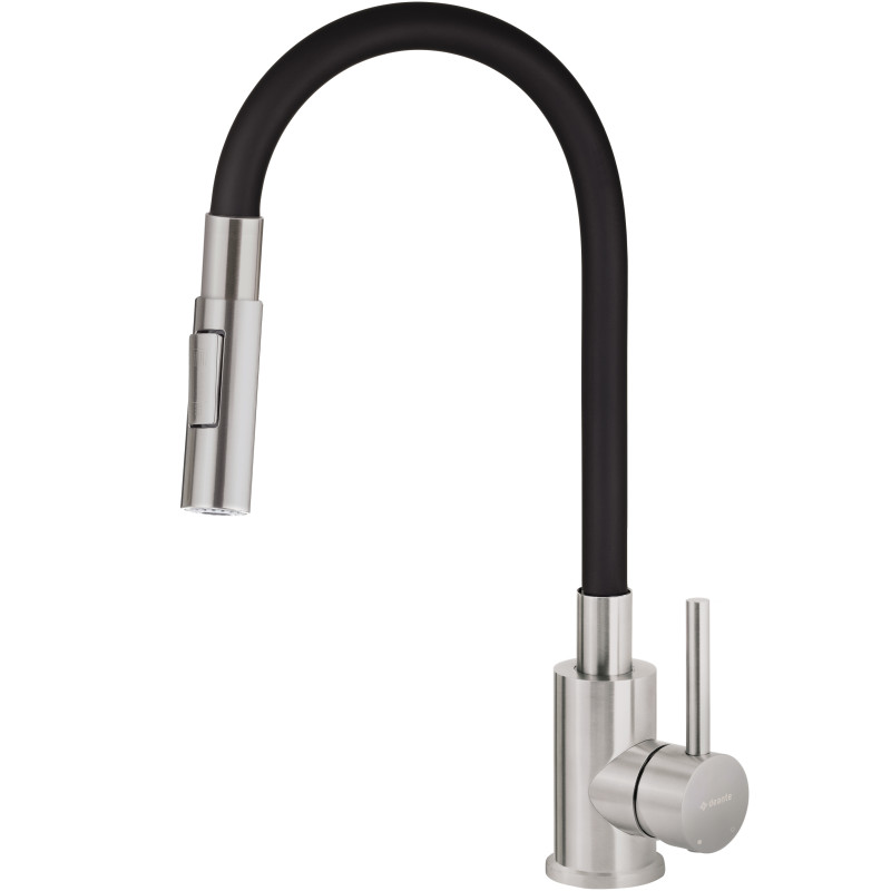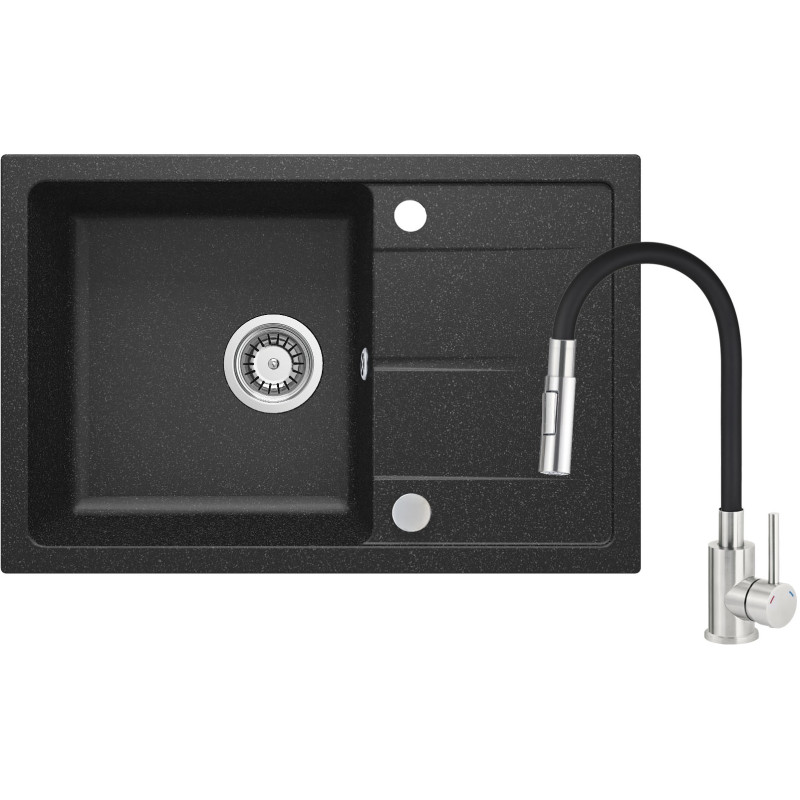 Набір для кухні Deante Leda поєднує гранітну мийку та змішувач із нержавіючої сталі, створюючи функціональне та довговічне рішення для сучасного простору. Мийка стійка до ударів, подряпин і високої температури, а її поверхня з іонами срібла має антисептичні властивості. Гідрофобне покриття відштовхує краплі води, зберігаючи охайний вигляд. Змішувач із двофункціональною лійкою забезпечує зручність користування та економію води.