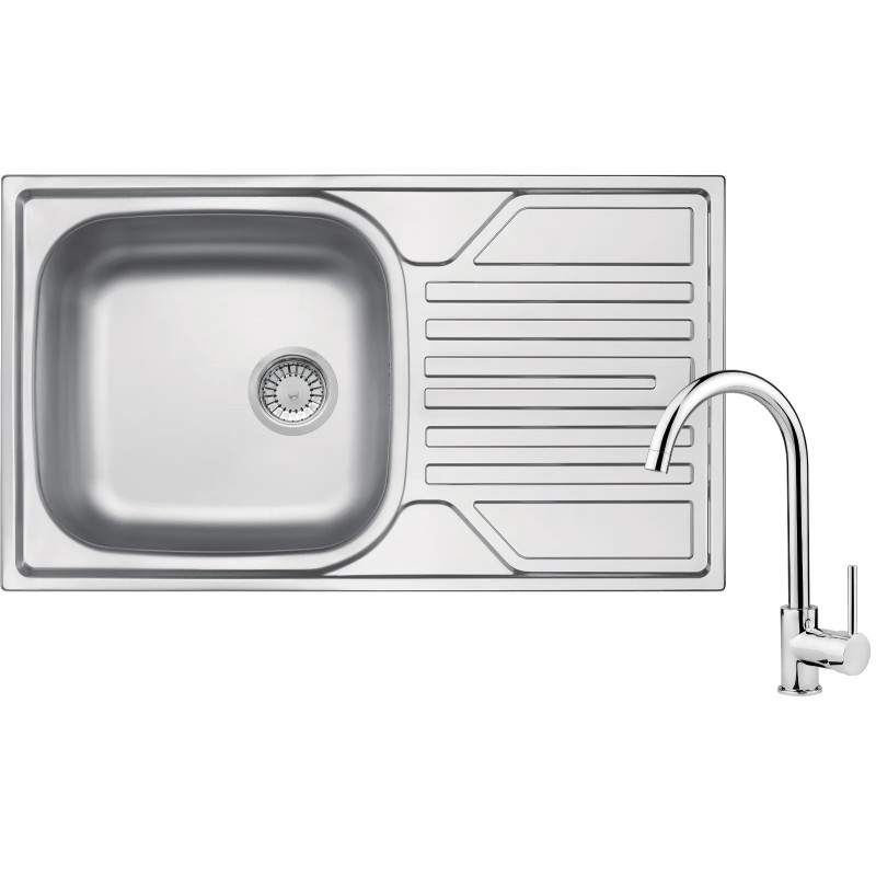Високоміцна нержавіюча сталь. Мийка з сифоном для підключення до посудомийної машини. Природні антисептичні властивості сталі. Спеціальний засіб, безпечний для очищуваних поверхонь. З'єднувальні шланги у комплекті, 45 см. Змішувач обладнаний струменевим аератором. Монтажна втулка полегшує установку змішувача.