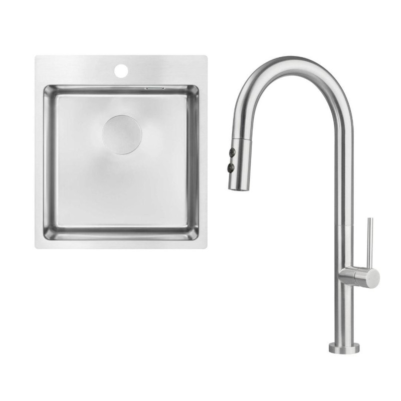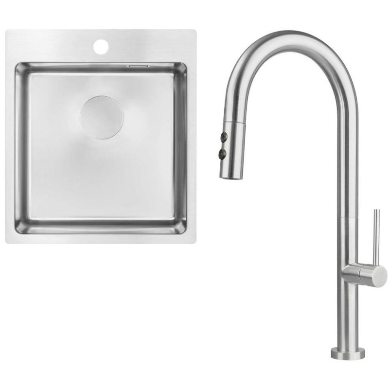 Набір для кухні Deante Olfato пропонує практичність та елегантний дизайн для сучасних кухонь, забезпечуючи зручність і функціональність у щоденному використанні. Раковина з серії OLFATO виготовлена з високоякісної сталі 304 з брашованою обробкою, що додає їй вишуканого вигляду, а також підвищує стійкість до подряпин і забруднень. Вона має одну глибоку камеру (200 мм), що робить її ідеальною для миття великих каструль та іншого посуду. Завдяки можливості врізного, підвісного монтажу або встановлення на одному рівні зі стільницею, раковина легко інтегрується в різні кухонні інтер'єри, додаючи мінімалізму та сучасного стилю.
