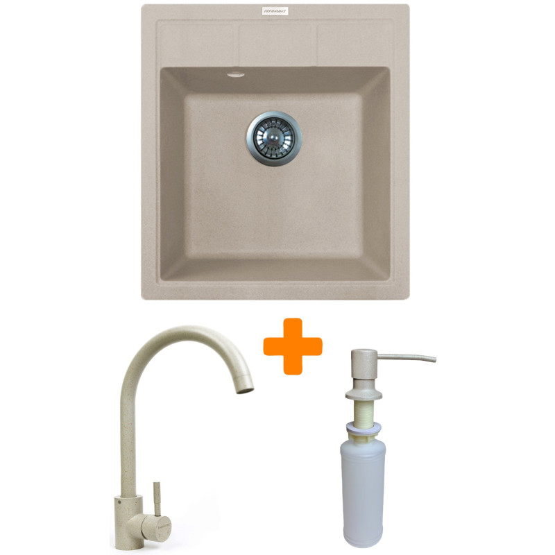 Набір кухонна Adamant Brick, штучний камінь, квадрат, без крила, 460x515x200мм, чаша - 1, врізна, Avena + змішувач та дозатор