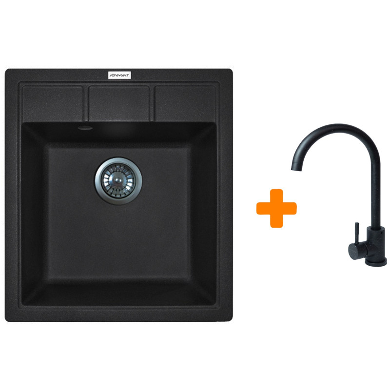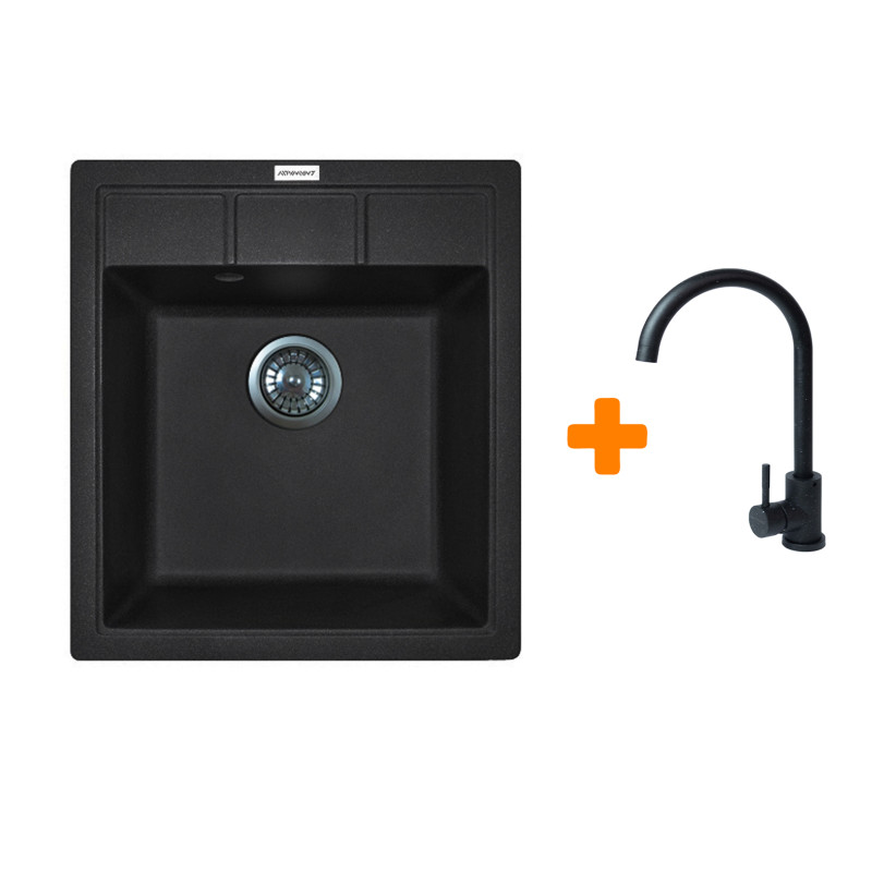 Набір кухонна Adamant Brick, штучний камінь, квадрат, без крила, 460x515x200мм, чаша - 1, врізна, чорний + змішувач