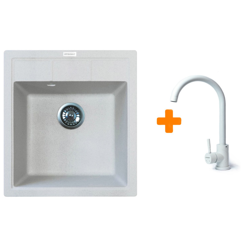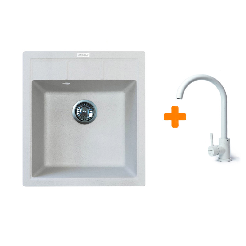Набір Adamant Brick поєднує практичну кухонну мийку зі штучного каменю та функціональний змішувач зі зручною висотою виливу. Мийка з квадратною формою та глибокою чашею підходить для щоденного використання, забезпечуючи комфорт і надійність. Непориста поверхня легко очищується та зберігає гігієнічність. Змішувач виготовлений із харчової нержавіючої сталі та має поворот на 360°. Це універсальне рішення для сучасної кухні.