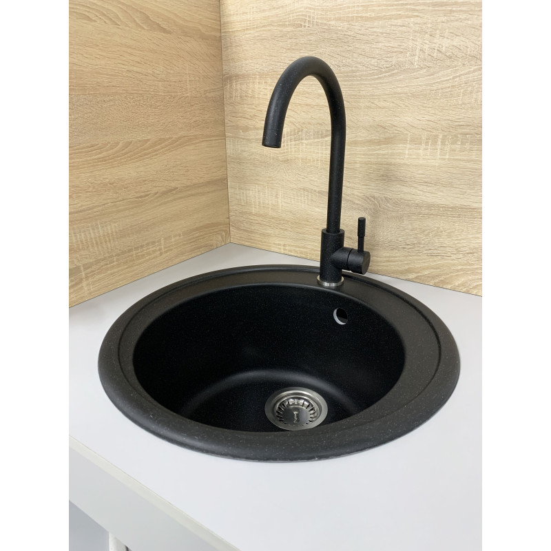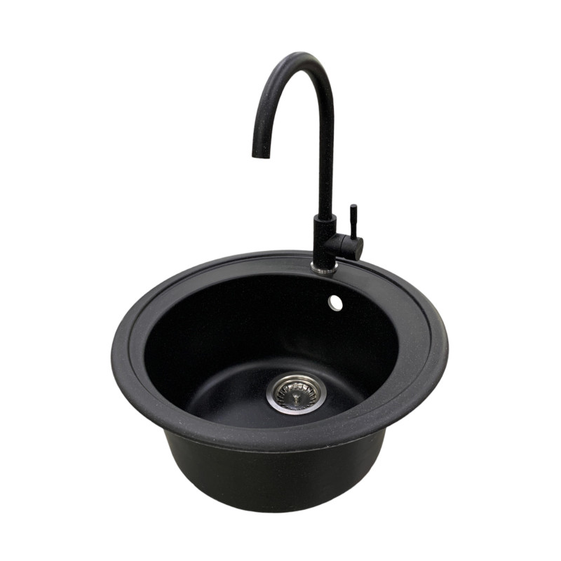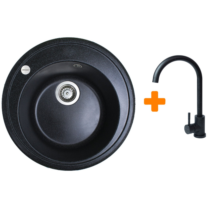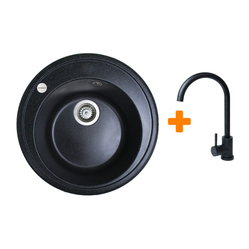 Набір кухонна Adamant Sun, штучний камінь, кругла, без крила, 510x200мм, чаша - 1, врізна, чорний + змішувач