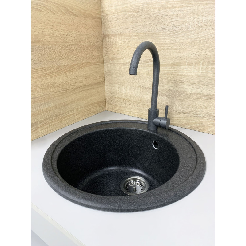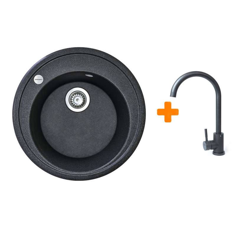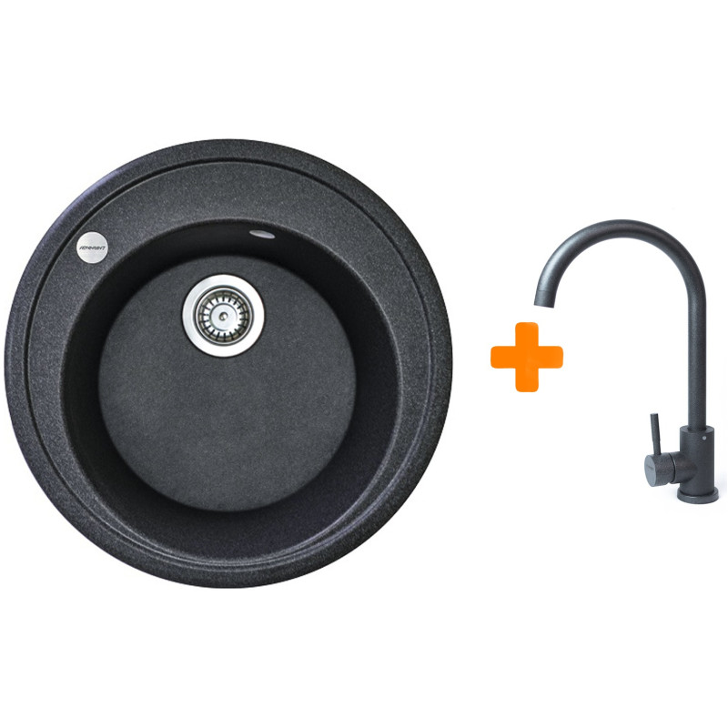 Набір кухонна Adamant Sun, штучний камінь, кругла, без крила, 510x200мм, чаша - 1, врізна, графіт + змішувач