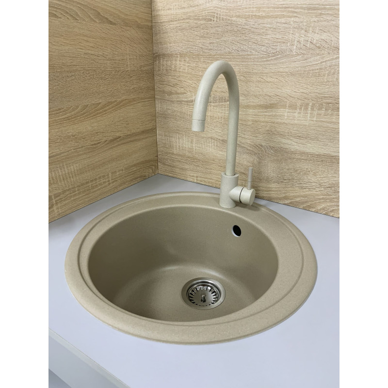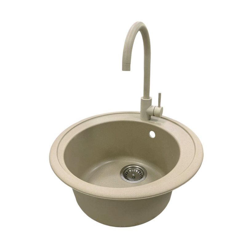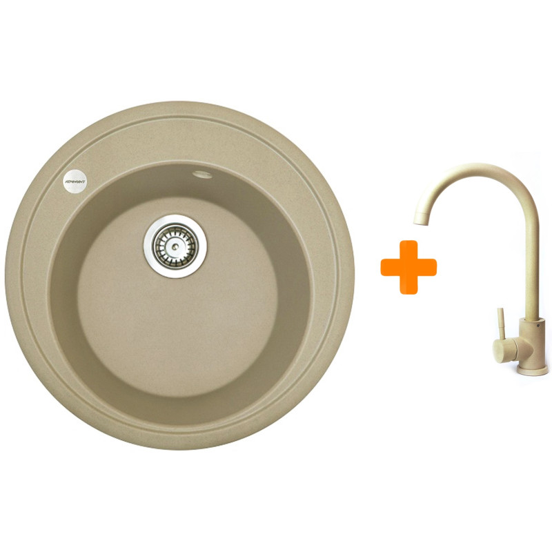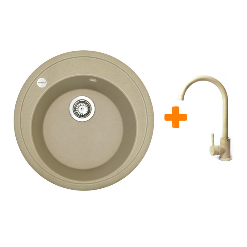 Набір кухонна Adamant Sun, штучний камінь, кругла, без крила, 510x200мм, чаша - 1, врізна, Сахара + змішувач