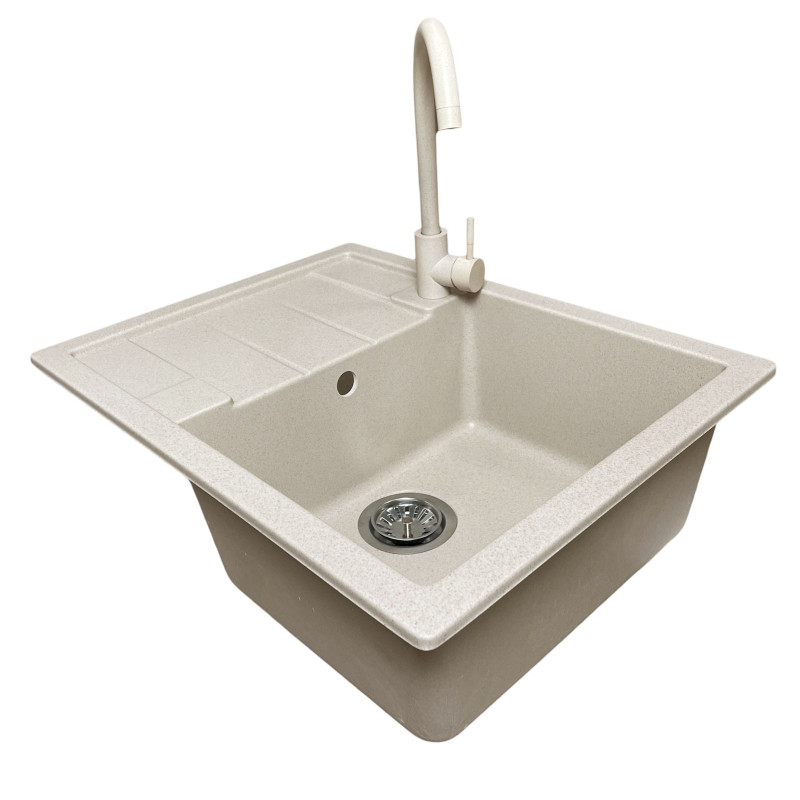 Кухонний набір Adamant Anila поєднує мийну з міцного штучного мінерального матеріалу та змішувач у сучасному дизайні. Мийка виконана у прямокутній формі з крилом та має зручну основну чашу для щоденного використання. Матеріал стійкий до високих температур, подряпин і впливу побутової хімії. Змішувач доповнює комплект, забезпечуючи комфортне регулювання води та плавну роботу. Набір створений для тих, хто цінує практичність, довговічність і приємну естетику на кухні.