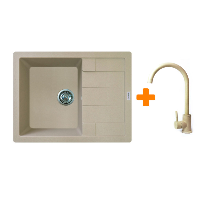 Набір кухонний Adamant Anila, штучний камінь, прямокут., з крилом, 645х495х200мм, чаша - 1, врізна, Сахара + змішувач