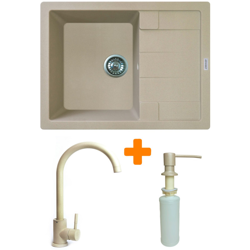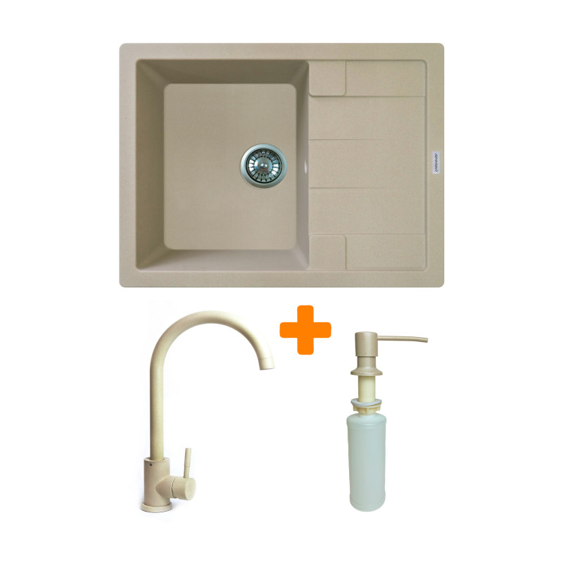 Набір кухонний Adamant Anila, штучний камінь, прямокут., з крилом, 645х495х200мм, чаша - 1, врізна, Сахара + змішувач та дозатор