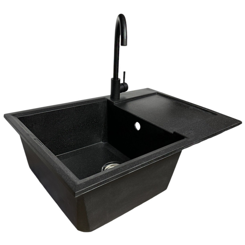 Набір кухонний Adamant Horizon Medium, штучний камінь, прямокут., з крилом, 700х500х230мм, чаша - 1, врізна, чорний + змішувач