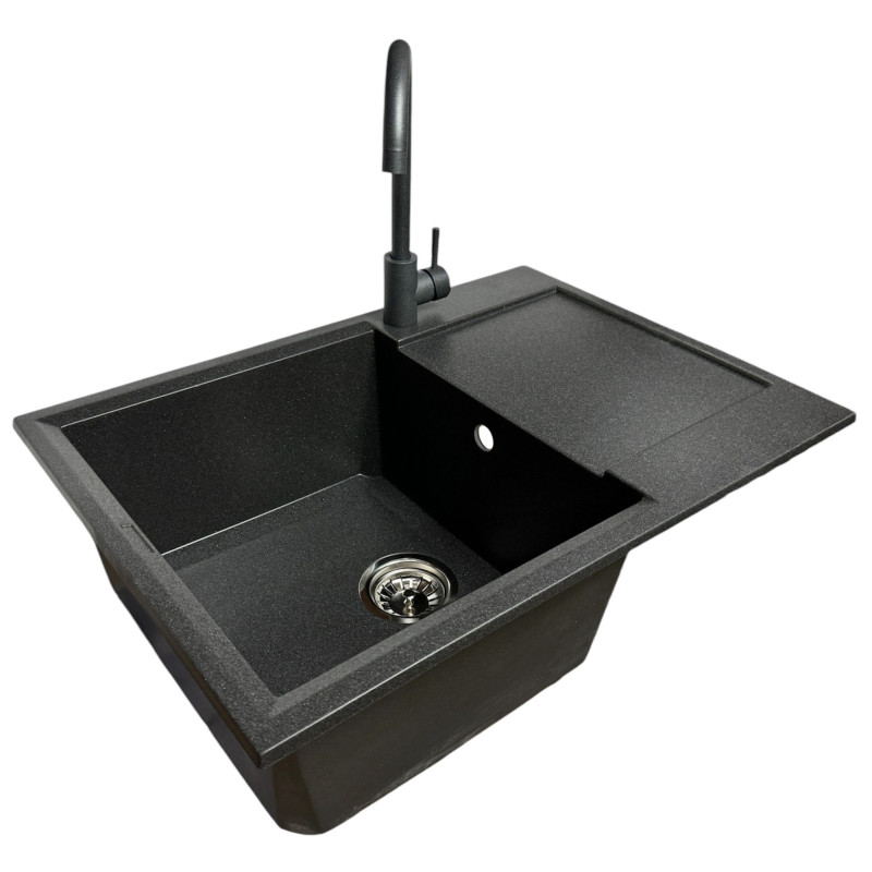 Кухонний набір Adamant Horizon Medium поєднує містку прямокутну мийку зі штучного каменю та ергономічний змішувач для комфортної роботи. Глибока чаша та зручне крило створюють достатньо простору для миття посуду та обробки продуктів. Матова поверхня зберігає охайний вигляд навіть за частого використання. Технологія Solid Surface забезпечує високу довговічність та стійкість до впливу зовнішніх факторів. Це практичний вибір для сучасної кухні.