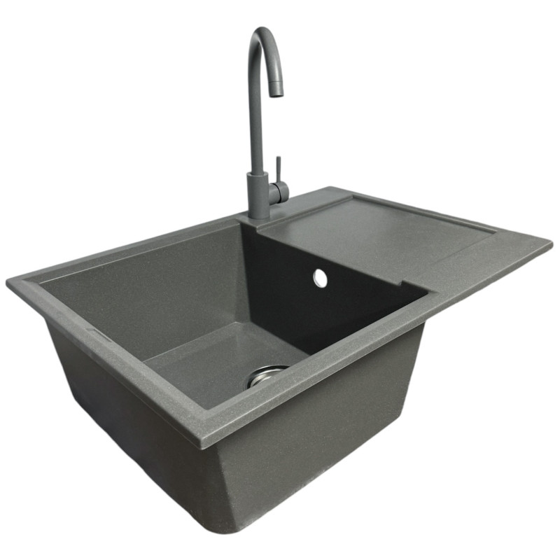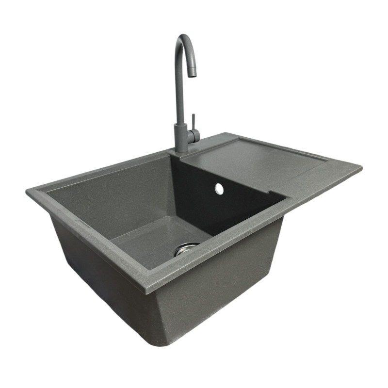 Кухонний набір Adamant Horizon Medium поєднує містку прямокутну мийку зі штучного каменю та ергономічний змішувач для комфортної роботи. Глибока чаша та зручне крило створюють достатньо простору для миття посуду та обробки продуктів. Матова поверхня зберігає охайний вигляд навіть за частого використання. Технологія Solid Surface забезпечує високу довговічність та стійкість до впливу зовнішніх факторів. Це практичний вибір для сучасної кухні.