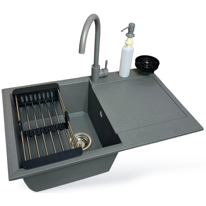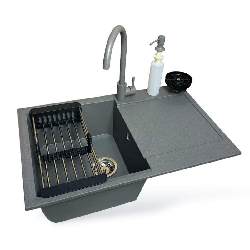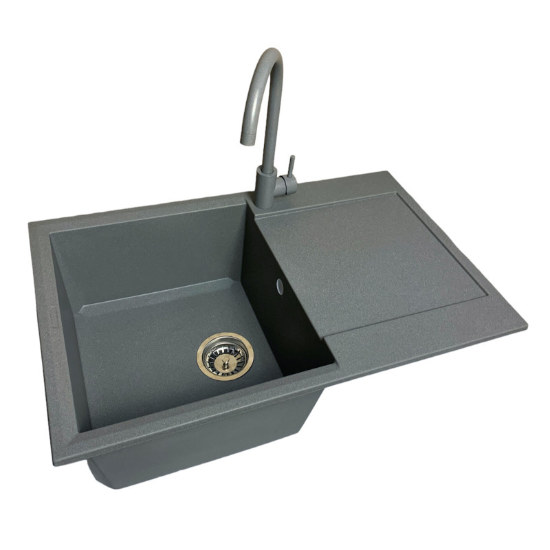Набір кухонний Adamant Horizon, штучний камінь, прямокут., з крилом, 780х495х230мм, чаша - 1, врізна, сірий + змішувач та дозатор