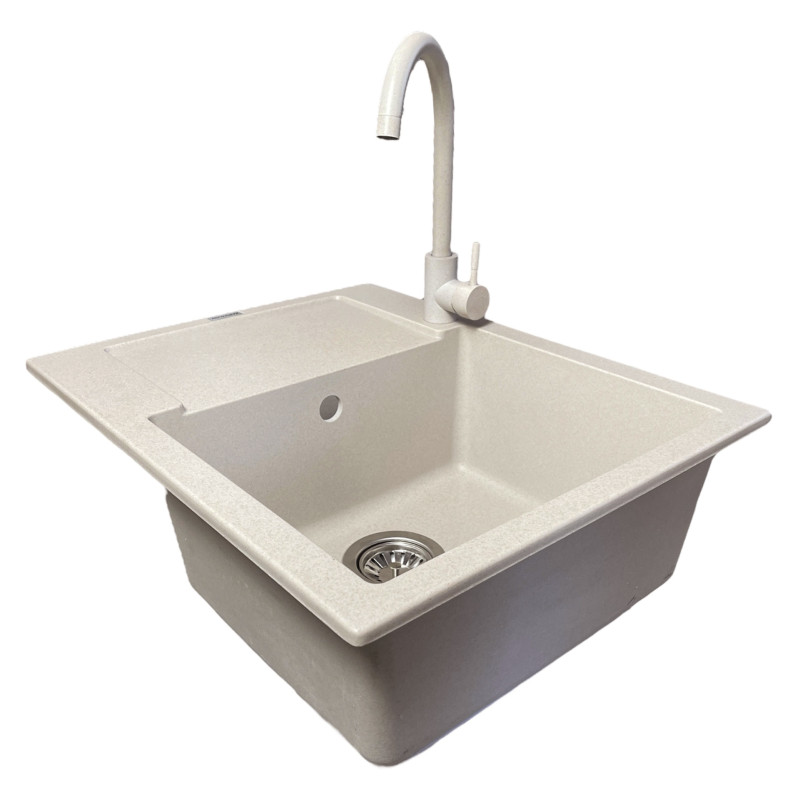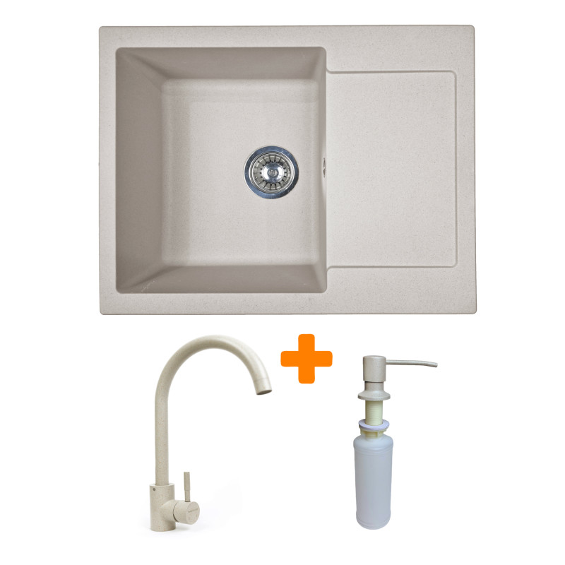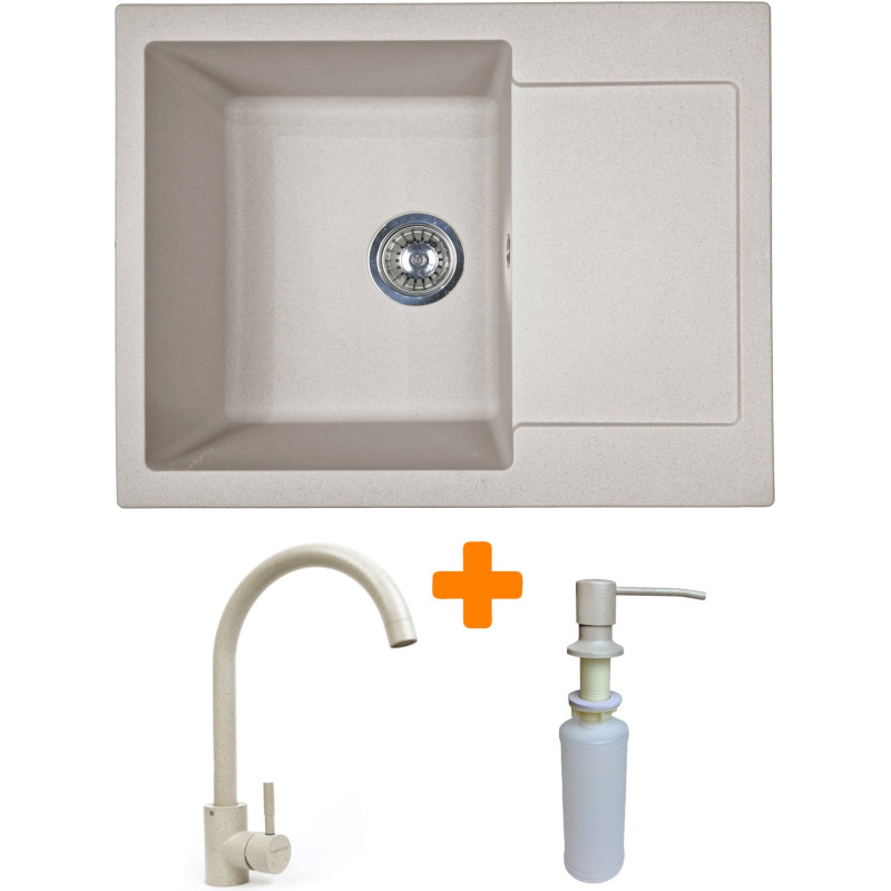 Набір кухонний Adamant Minimal, штучний камінь, прямокут., з крилом, 615х495х200мм, чаша - 1, врізна, Avena + змішувач та дозатор