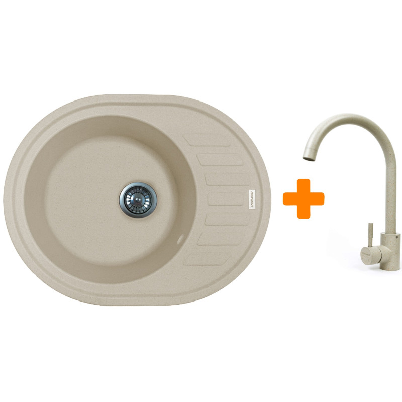Набір кухонний Adamant Ovum, штучний камінь, овальна, з крилом, 615х495х200мм, чаша - 1, врізна, Avena + змішувач