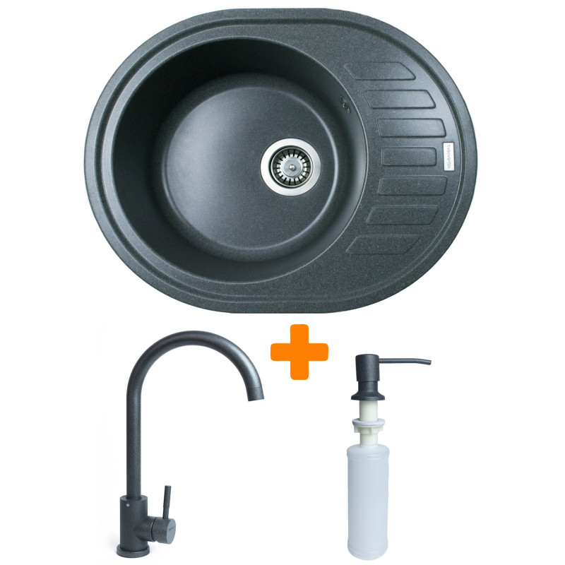 Набір Adamant Ovum складається з овальної врізної мийки зі штучного каменю з крилом, змішувача та дозатора, утворюючи практичне комплексне рішення для кухні. Мийка виконана за технологією Solid Surface, що забезпечує високу стійкість до температур і щоденних навантажень. Глибока чаша зручна для роботи з великим посудом та продуктами. Змішувач і дозатор виготовлені з надійних матеріалів та доповнюють загальну функціональність. Це сучасний набір для тих, хто цінує комфорт і довговічність.