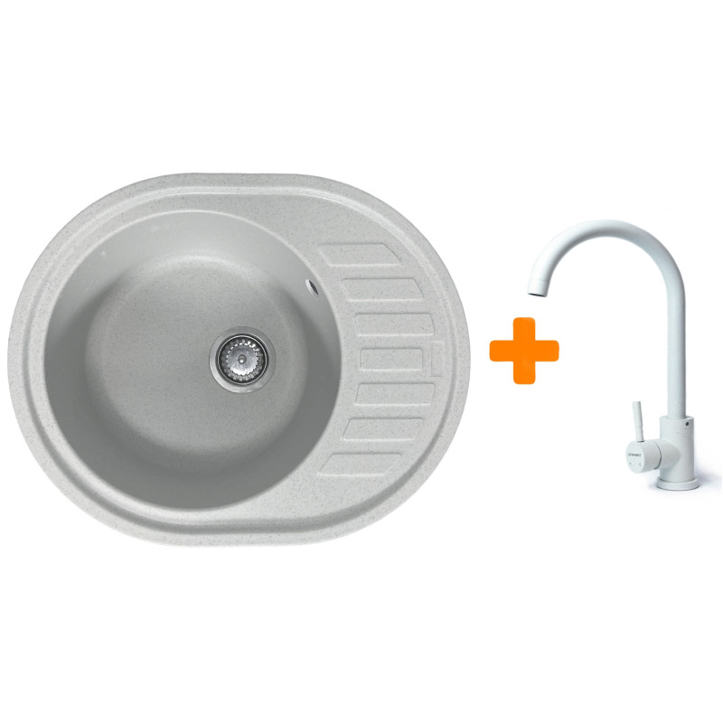 Набір кухонний Adamant Ovum, штучний камінь, овальна, з крилом, 615х495х200мм, чаша - 1, врізна, Old stone + змішувач