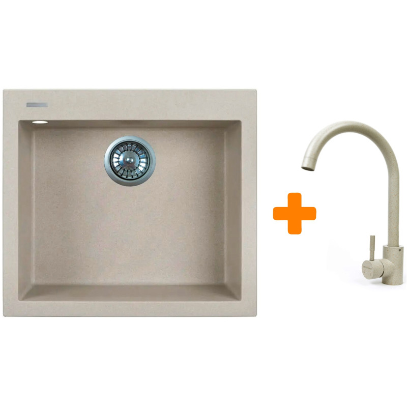 Набір кухонний Adamant Univer, штучний камінь, квадрат, без крила, 560х500х200мм, чаша - 1, врізна, Avena + змішувач