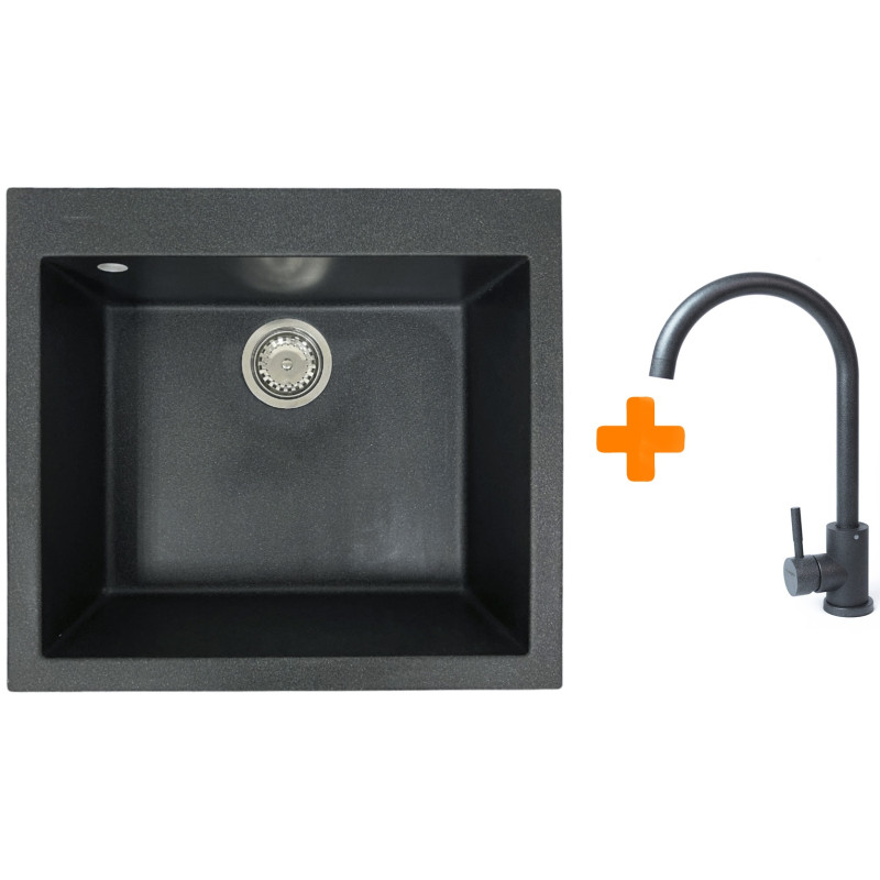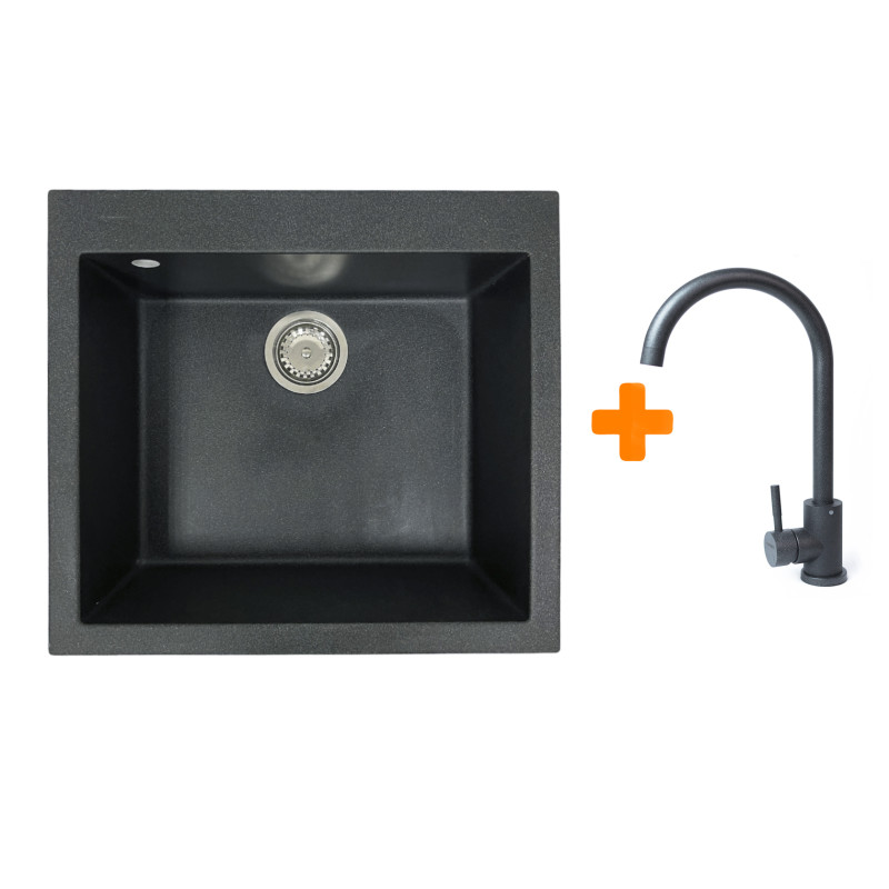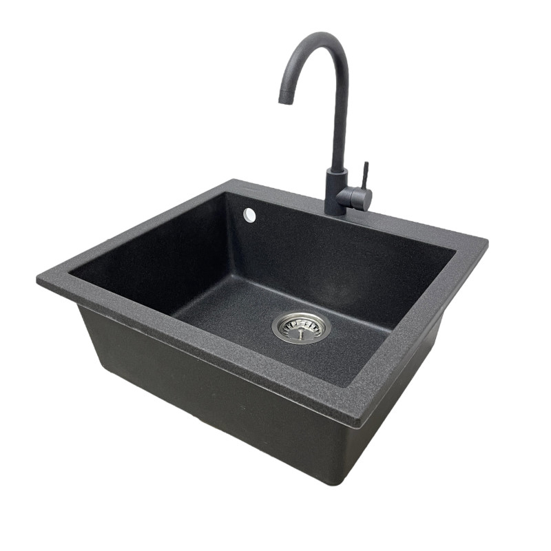 Набір кухонний Adamant Univer, штучний камінь, квадрат, без крила, 560х500х200мм, чаша - 1, врізна, графіт + змішувач