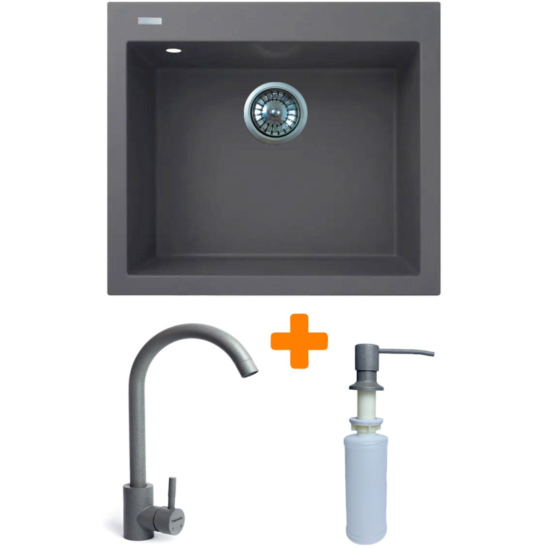 Набір Adamant Univer поєднує квадратну врізну мийку зі штучного каменю, змішувач та дозатор – зручне рішення для продуманої кухні. Технологія Solid Surface забезпечує міцність, термостійкість та простоту догляду. Глибока чаша створює комфорт під час щоденної роботи, а компактна конструкція без крила допомагає раціонально використовувати простір. Дозатор робить подачу мийного засобу акуратною та зручною, підтримуючи порядок у робочій зоні.