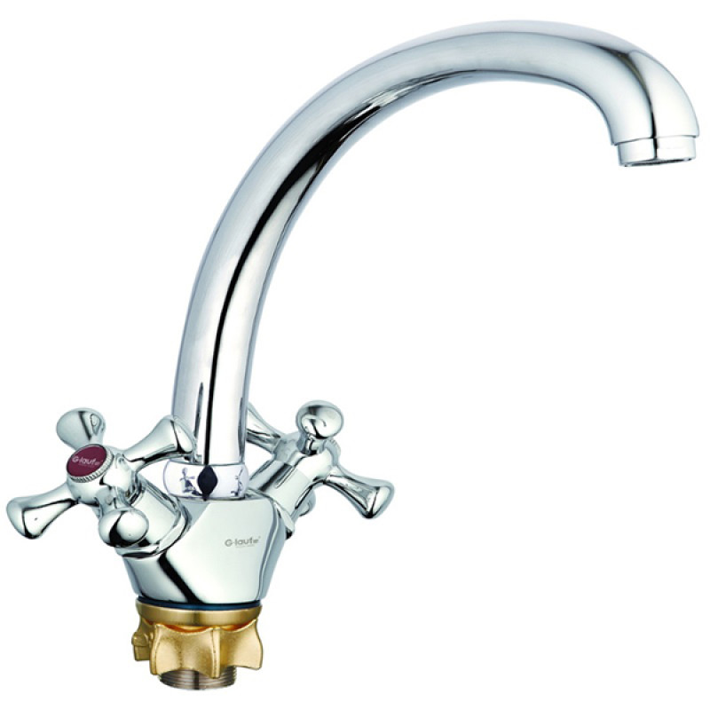 Змішувач марки G-Lauf серії QSL4-B827 використовується для кухонної мийки, має вигнутий поворотний вилив (гусак) 180 мм, двовентильний тип керування. Конструкція сантехнічного приладу - "ялинка". Змішувач виготовлений з латуні, що дозволяє йому бути стійким до постійного впливу води. Виконано в класичному кольорі хром, що виглядає дуже сучасно і практично. Монтується змішувач на умивальник з допомогою гайки, така короноподібна форма дозволяє з легкістю прикрутити кріплення пальцями. Вдосконалений спосіб лиття під тиском забезпечить Вам високу міцність змішувача і велику довговічність вироби. Компанія G-Lauf застосовує останні розробки при виробництві своєї продукції. Змішувачі G-Lauf відповідають всім стандартам якості, а найширший вибір надає можливість підібрати відповідну по стилю модель практично до будь-якого інтер'єру кухні. Сантехніка G-Lauf володіє зразковою якістю, великою стійкістю і довгим терміном служби. Вся продукція має сертифікати якості та санітарно-гігієнічні висновки, відповідає європейським стандартам.