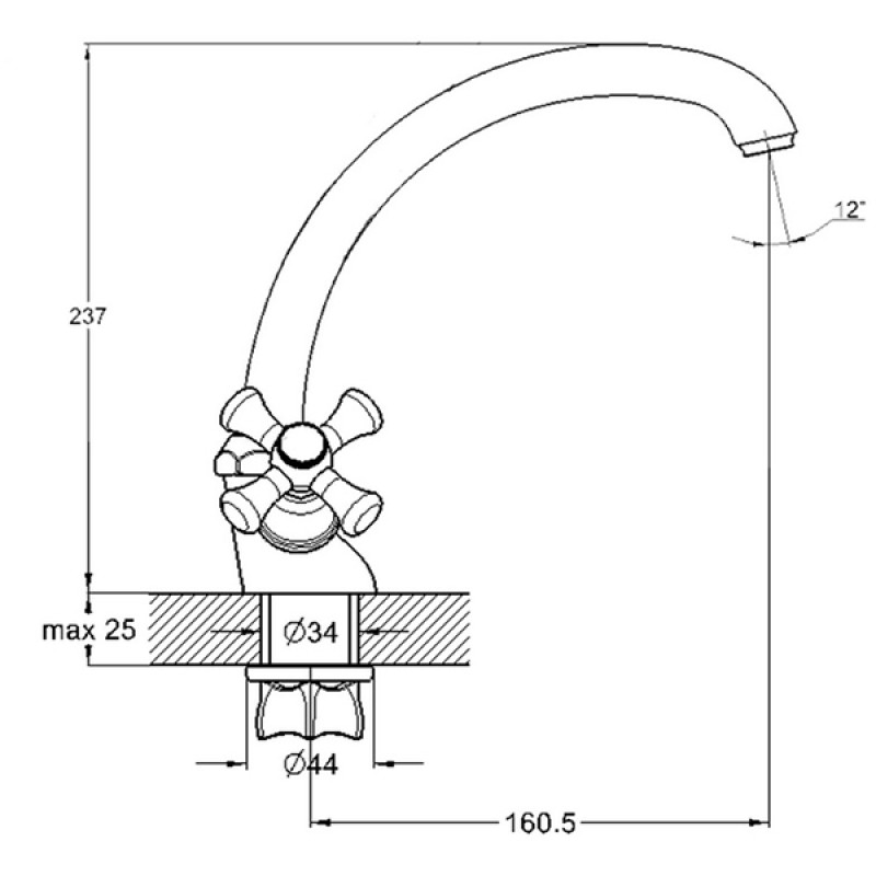 | Форма виливу | вигнутий |