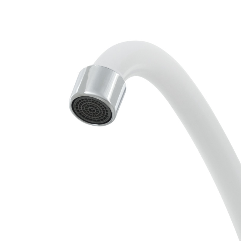Пластиковий змішувач – дуже легкий, має привабливий зовнішній вигляд, виготовлений з сучасних матеріалів. Не зважаючи на доступність товару, він повноцінно справляється з технічною рідиною до +95 °C. Змішувачі мають стандартні входи для підводу води, що спрощує їх монтаж та подальше обслуговування. Монтаж та фіксація змішувача відбувається за допомогою пластикової гайки, яку можна притягнути та закрутити навіть без додаткових інструментів.