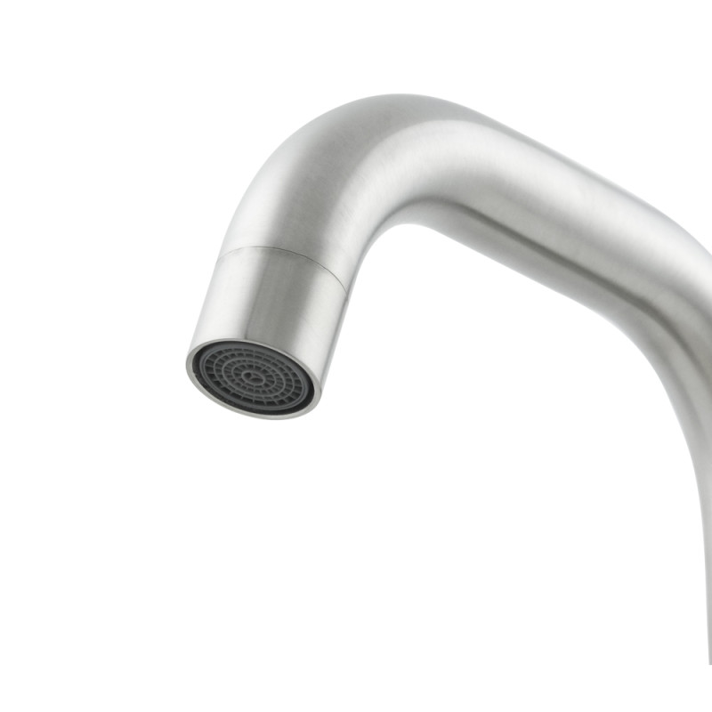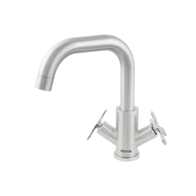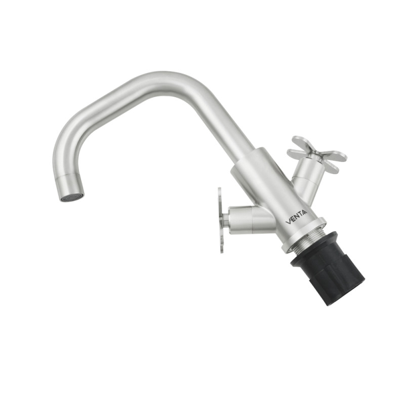 Змішувач для кухні VENTA VK103MS — зручний змішувач, який чудово підходить для компактних мийок, забезпечуючи ефективне використання простору. Виготовлений з високоякісної нержавіючої сталі з елегантною сатиновою обробкою, що мінімізує видимі сліди від води та відбитки пальців. Особливість моделі - зручний вигнутий Г-подібний вилив із функцією повороту, що робить використання змішувача максимально комфортним і практичним.