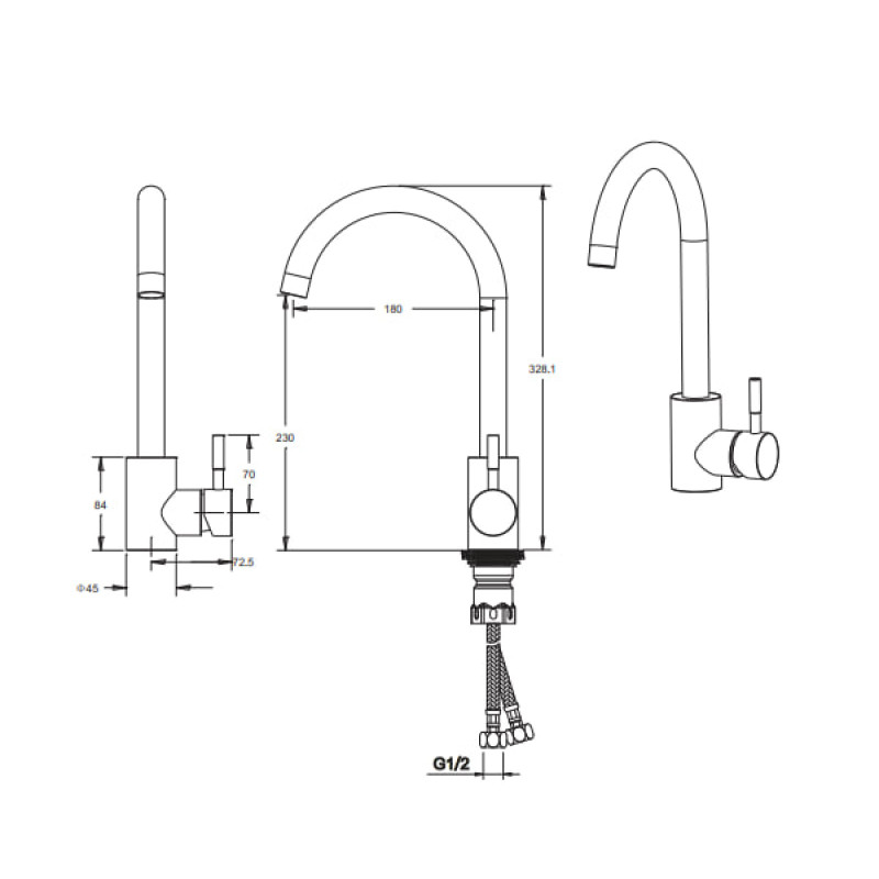 U-подібний вигнутий вилив має ідеальну довжину 180 мм — достатнього, аби впоратися з буденним об'ємом посуду, зокрема й великими каструлями.