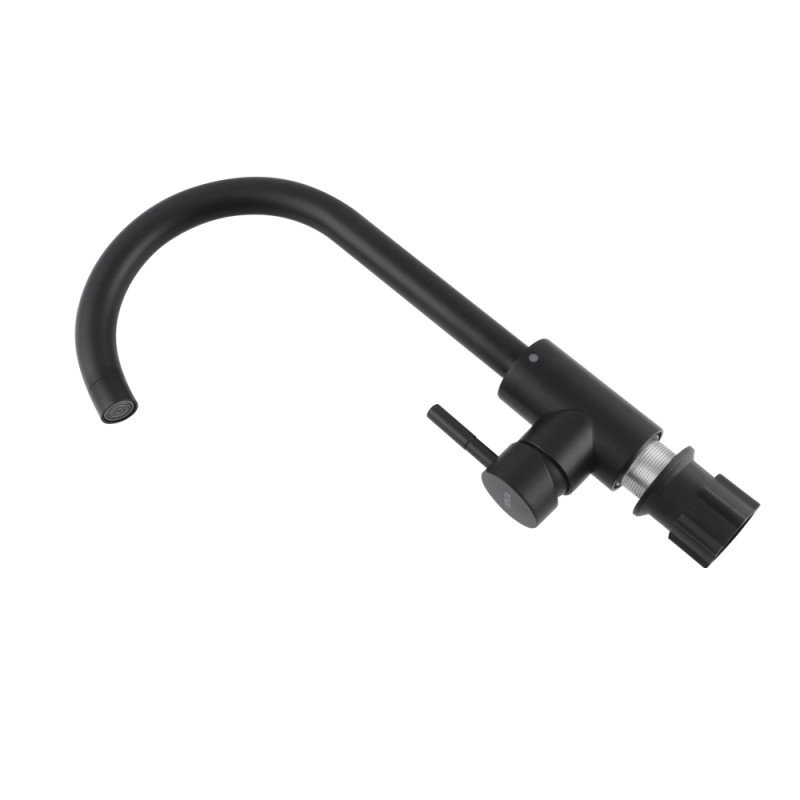 Змішувач для кухні VENTA VS402UB у чорному матовому кольорі — це вишукане дизайнерське рішення для кухні, яке не тільки прикрасить інтер'єр, а й стане надійним помічником у щоденних справах. Виготовлений із високоякісної міцної нержавіючої сталі, він забезпечує високу стійкість до вологи, корозії та механічних пошкоджень.