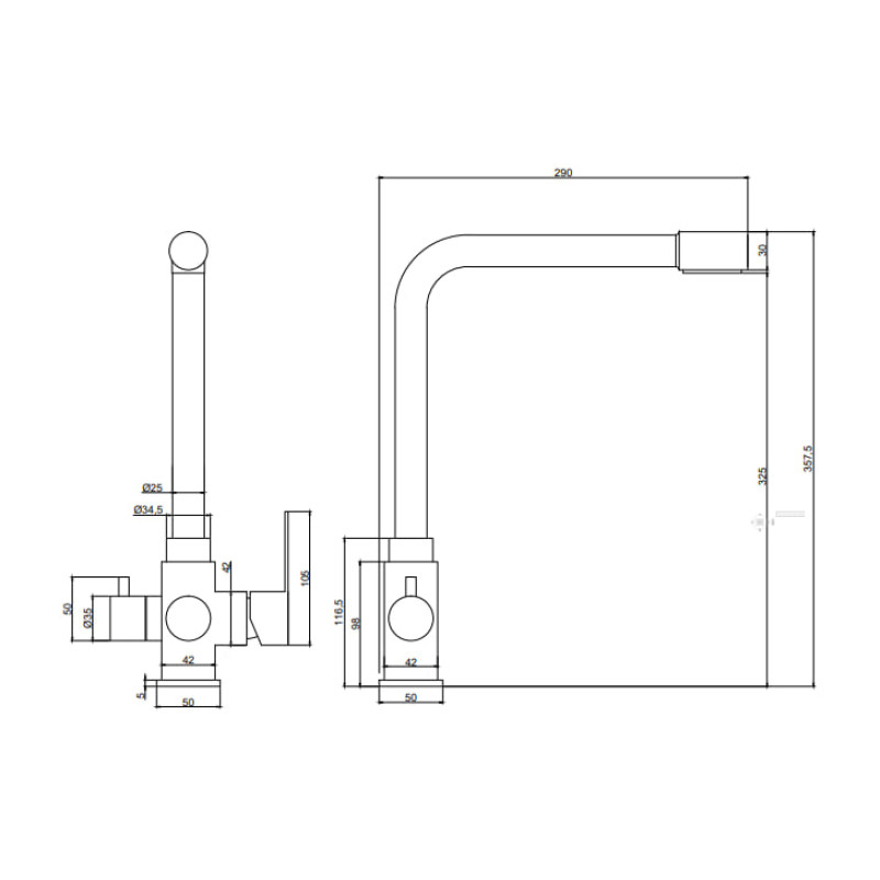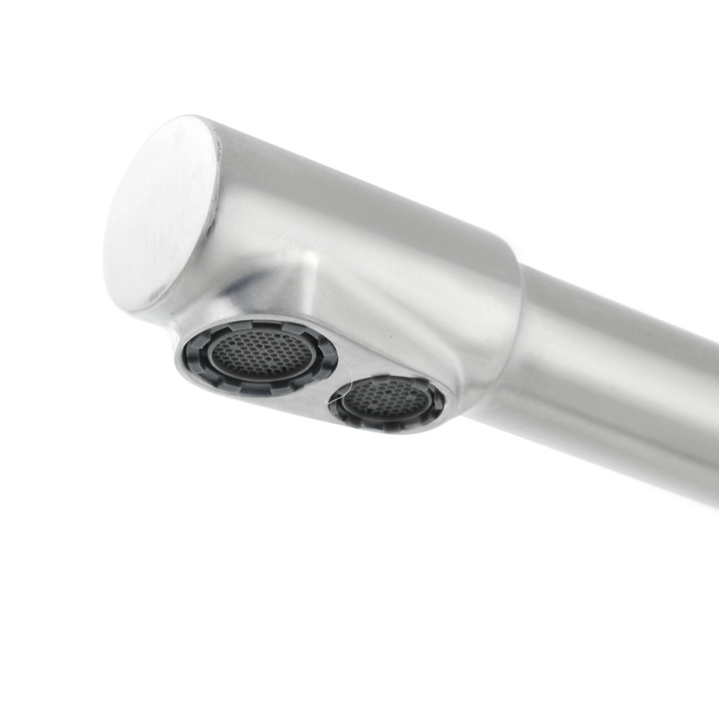 Змішувач для кухні VENTA VC803FS — це продуманий вибір для сучасної кухні, де важливі як естетика, так і функціональність. Двоважільна модель дозволяє роздільно керувати потоками технічної та питної води, що особливо зручно при підключенні до системи зворотного осмосу. Завдяки використанню високоякісної харчової нержавіючої сталі корпус має підвищену стійкість до корозії, не піддається деформаціям і зберігає презентабельний вигляд навіть після багаторічної експлуатації. Вигнута форма виливу забезпечує комфортне користування, а простота конструкції робить змішувач легким у догляді. Такий змішувач стане вдалим вибором, підкреслюючи стиль і турботу про якість води в домі.