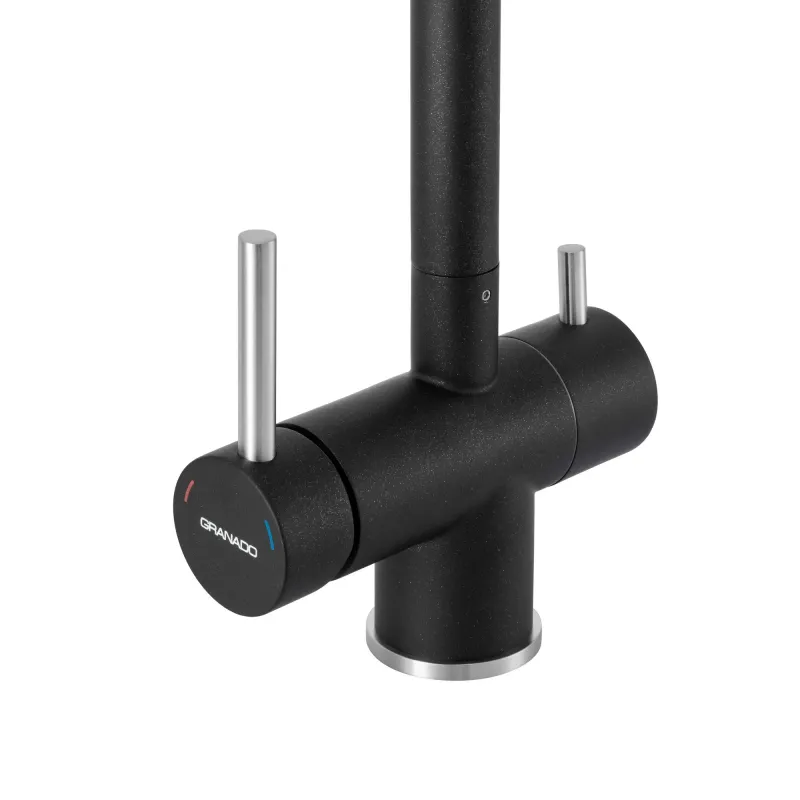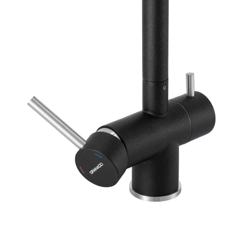 Змішувач для мийки GRANADO Caspe Black Shine з можливістю підключення до фільтру очистки води. Це універсальна модель, яка буде доречна у різних стилях інтерʼєру: достатньо визначитися лише з кольором.