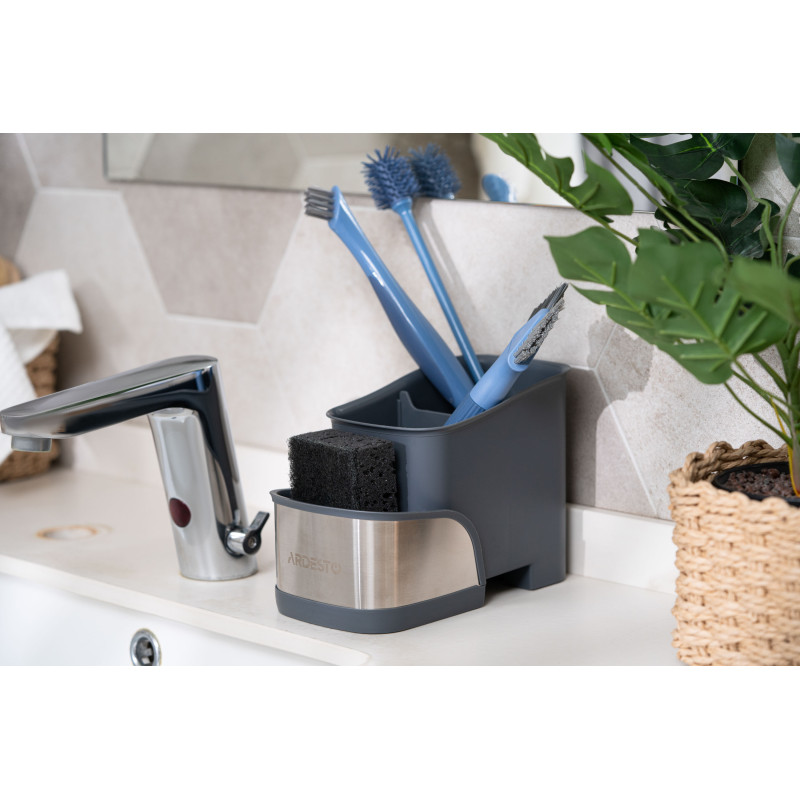 Органайзер для щіток ARDESTO Minimalism, 15х10х13.5см, пластик, нержавіюча сталь, сірий