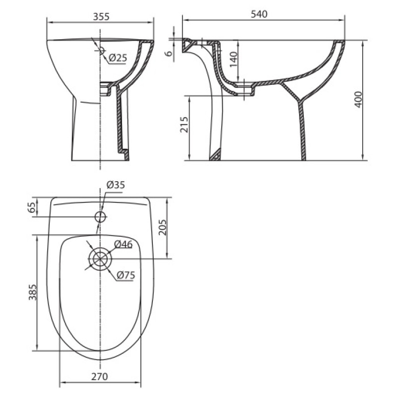Габаритні розміри виробу 400х355х540 мм. Біде - дуже стильний аксесуар для людей, які цінують комфорт, чистоту та зручність в догліяді за собою. Вся продукція має сертифікати якості та санітарно-гігієнічні висновки.