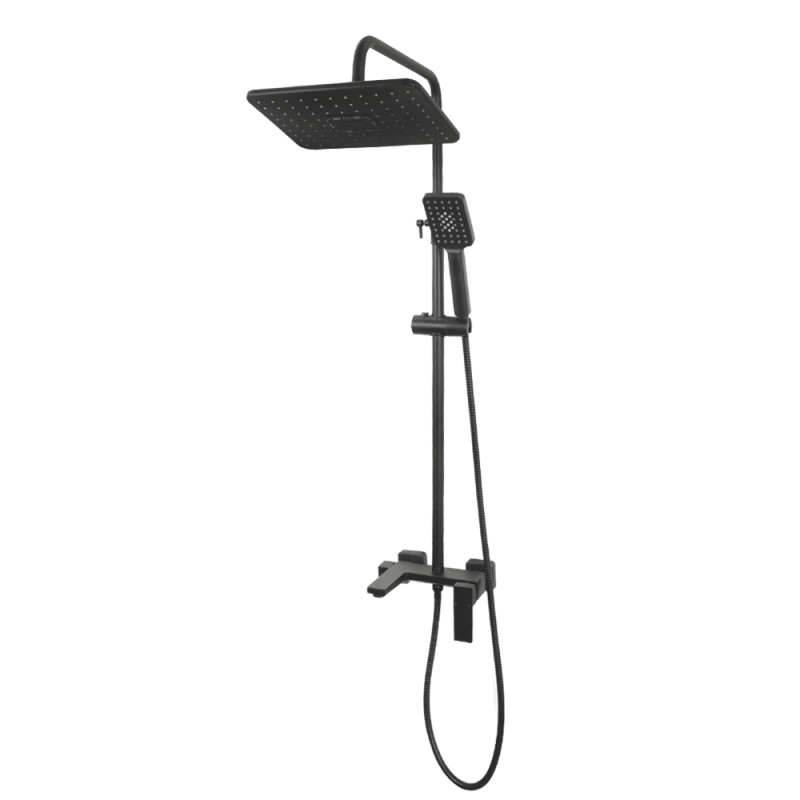 Регульована висота стійки від 850 до 1200 мм дозволяє адаптувати систему під індивідуальні потреби кожного користувача. Комплектна конфігурація включає змішувач з коротким виливом, ручний душ для зручності миття та стаціонарний душ для розслабляючого відпочинку.