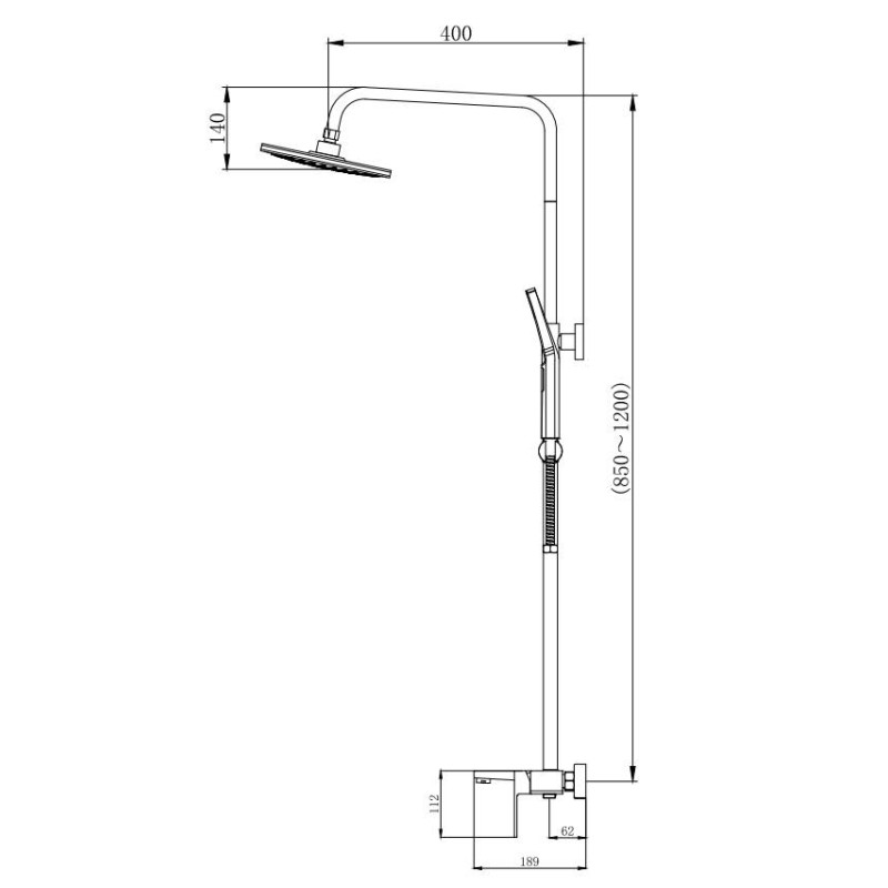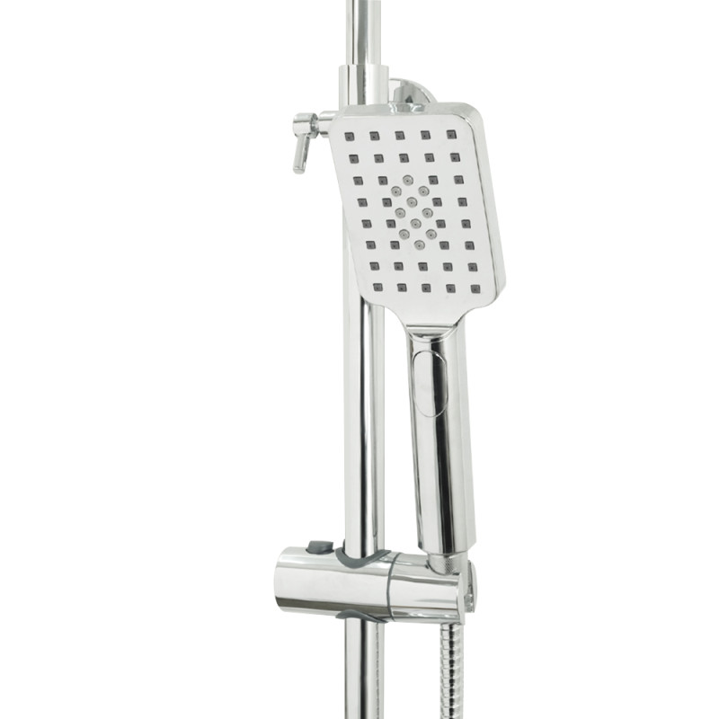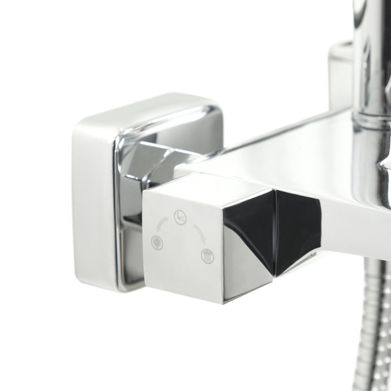 Конструкція з можливістю регулювання висоти стійки в діапазоні від 850 до 1200 мм робить цю душову систему ідеальним рішенням для різних потреб. Продуманий дизайн з поєднанням прямокутних та заокруглених форм створює гармонійний баланс між сучасністю та класикою.